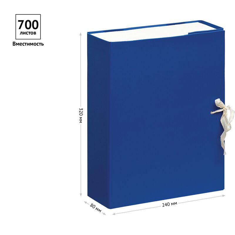 Короб архивный с завязками OfficeSpace разборный, БВ, 80мм, синий, клапан МГК, 245