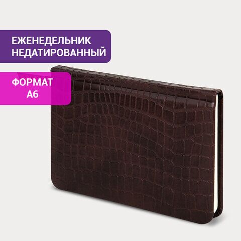 Еженедельник недатированный МАЛЫЙ ФОРМАТ А6 (95х155 мм) BRAUBERG Alligator, кожзам, 64 л., коричневый, 126183, 36540